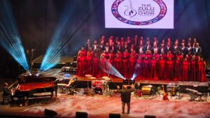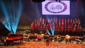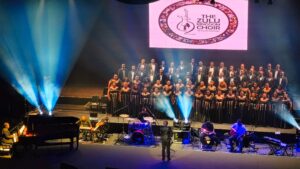 Nach der Vorband kam dann ein Prediger, der ein Lied sang, bei dem das ganze Publikum erneut mitsang. Dann hielt er eine Predigt auf Zulu und sang ein weiteres Lied bevor endlich der Chor kam.