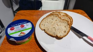 Nach dem Essen ging ich noch in einen Edelsupermarkt und kaufte mir ein Päckchen Streichkäse und ein Sauerteigbrot. Wer weiß wann ich sowas nochmal bekomme.