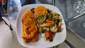 Da ich schon in der Nähe des tollen Checkers Supermarktes war, fuhr ich schnell dort hin und kaufte mir nochmal einen Backfisch mit Gemüse. Für knapp 4€ ein leckeres und bezahlbares Mittagessen.