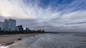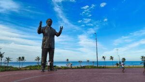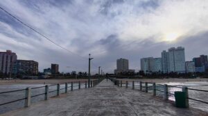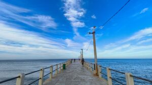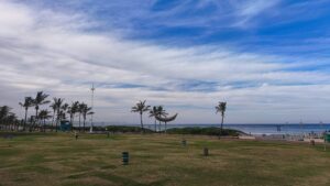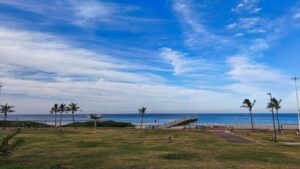 Auf dem Weg zurück zu meinem Apartment hielt ich noch am Strand. Ich wollte Durban nicht verlassen ohne wenigstens einmal den Strand gesehen zu haben. Hier gab es eine schöne Promenade wo ich gerne noch länger spazieren gegangen wäre, doch ich wollte mein Motorrad nicht unbeaufsichtigt parken. Deshalb ging ich lediglich zum Pier von wo aus ich mein Motorrad immer im Blick hatte. Leider konnte ich nicht lange bleiben, da es schon nach 16:00 Uhr war und ich noch einiges zu tun hatte. Außerdem musste ich ja auch noch meine Klamotten aus der Reinigung abholen, die mich bis jetzt noch nicht angerufen hatte.